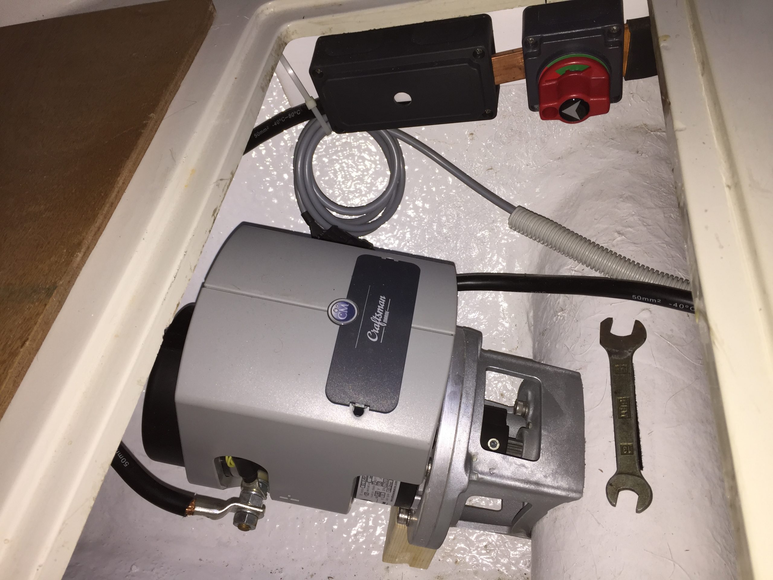 Autopilotinstallation, Beneteau Oceanis Installation och inkoppling av Raymarine’s EV-200 autopilot inklusive plastning av ny hylla för montering av drivenhet.