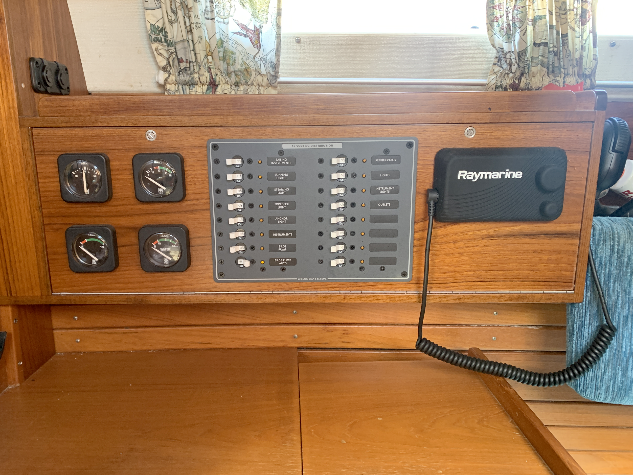 Renovering av elsystem Contrast 36. Total renovering av hela elsystemet i denna Contrast 36. Ny elpanel, Raymarine VHF radio med inbyggd AIS med mera.